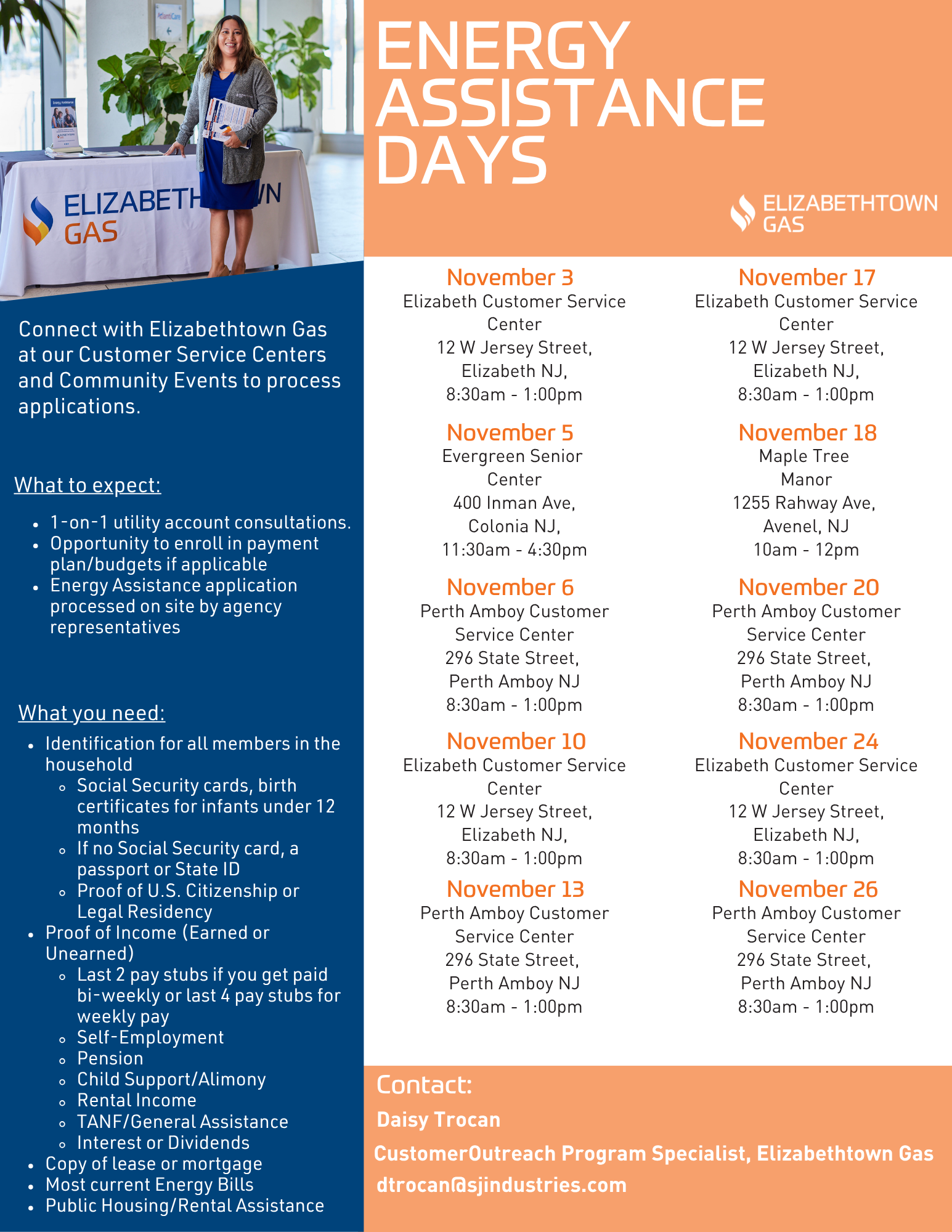If you are a New Jersey resident who rents or owns a home and are facing a crisis situation that includes a documented notice of overdue payment for gas and/or electric service—you may qualify. For more information, please visit sharesnation.org/energy, call 1.866.657.4273 or email info@njshares.org.